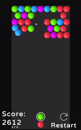 - If it connects with 2 or more others bubbles in the same color, they are all destroyed.