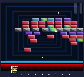is destroyed) Every brick in a short range starts moving and bouncing against other bricks and wall (bounce against the dotted line above the pad).